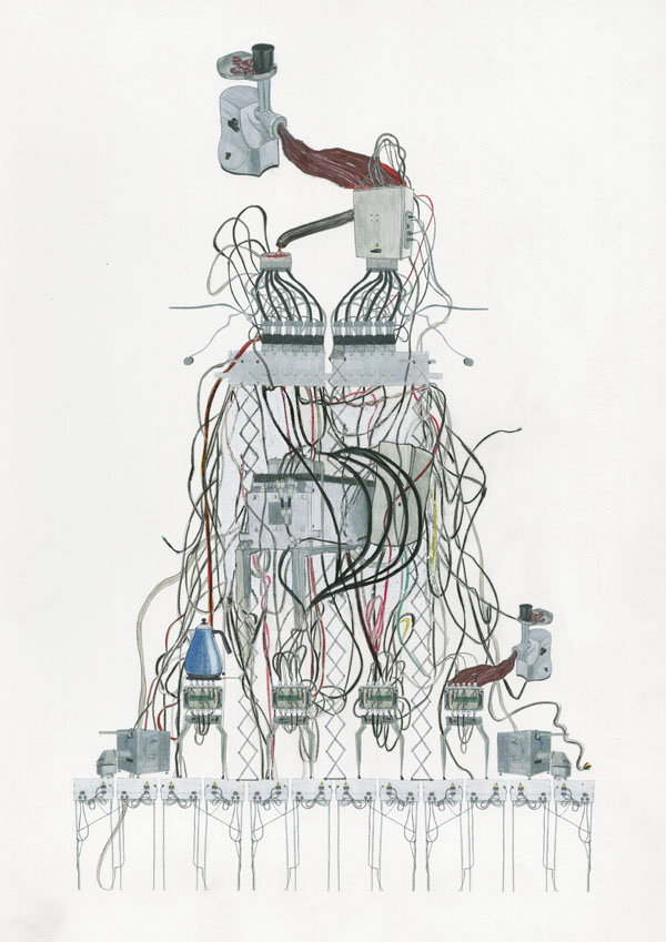 A large majority of my practice is made up of observational drawing. This method of working allows me to fully explore my subject, and is my way of working out how forms function together. Appropriate to the intention of the project, I like to manipulate these forms, or use them as reference to develop into something further.