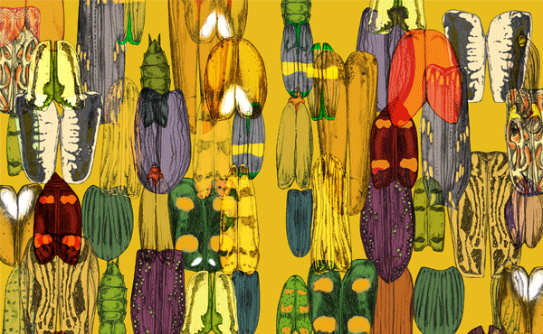 My work combines many different styles and mediums. I usually begin with hand-drawn or hand-made imagery and then manipulate it digitally to create my finished images. I am also very interested in applying traditional crafts such as embroidery, knitting, quilting, etc. within innovative and more graphical designs.My most recent project The Illustrated Beetle Alphabet is a hand-bound poetry book containing a beetle beginning with each letter of the alphabet, each accompanied by a poem and illustration.