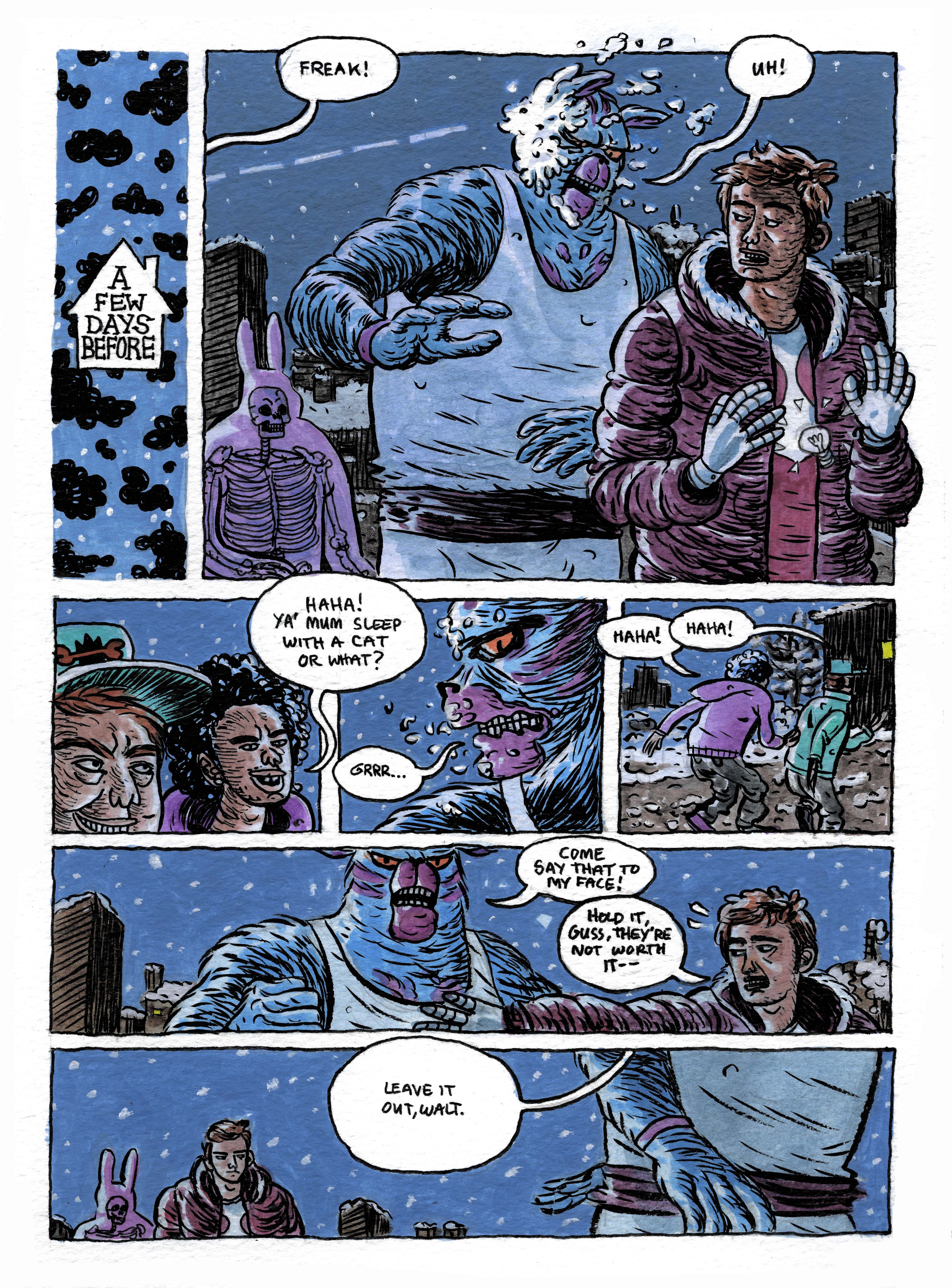 My work takes influence from life experiences, an unhealthy fascination with graphic novels and an obsession with film. My aim is to create a sense of atmosphere and narrative in my illustrations, often distorting reality to emphasize aspects of reality.