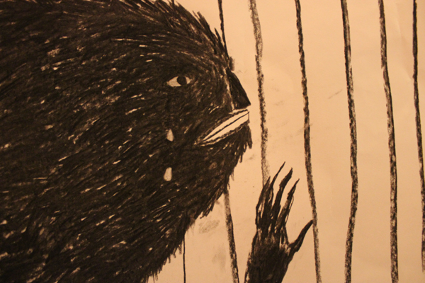"There were a few pieces that really hit home for me, that will both haunt my nightmares and fascinate my daydreams. To clarify, I think haunting my sleep is a good thing. Especially by silhouetted goblin creatures like those in Tabby Booth's illustrations. Her pictures had a fearful complexity with a rather innocent, illustrative style: childlike and terrifying. These animated ink drawings conveyed the Brothers Grimm with an oedipal complex mixed in."